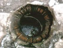 bröselnde Korkdämmstoff zeigen, dass Durchfeuchtungen