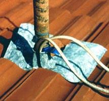 vielfach an dem das Dach durchdringenden Mast in den Dachraum geführt