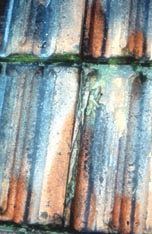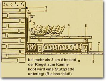 die Ziegel, wurden einzelne durch Blei- oder Bitumenbahnenstreifen