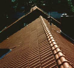 Tonziegel- durch eine Beton-dachsteineindeckung ersetzt |