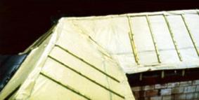 waren notdürftig mit einer Unterspannbahn, z.T. am First an die