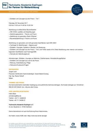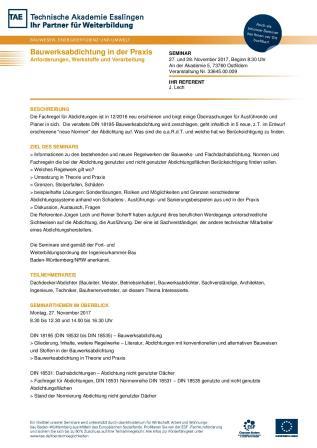 Technische Akademie Esslingen - 16.11. + 17.11.2020 "Bauwerksabdichtung in der Praxis"